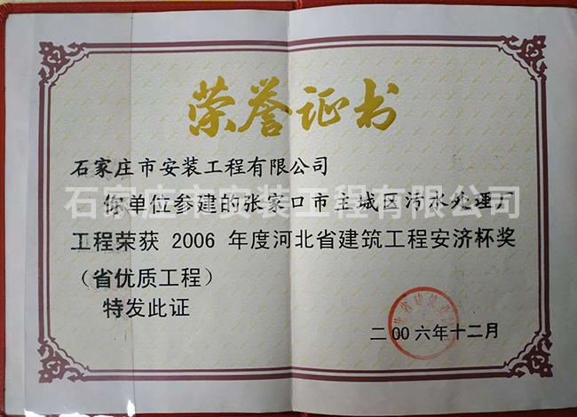 2006年度河北省建筑工程安濟杯獎(省優(yōu)質(zhì)工程)