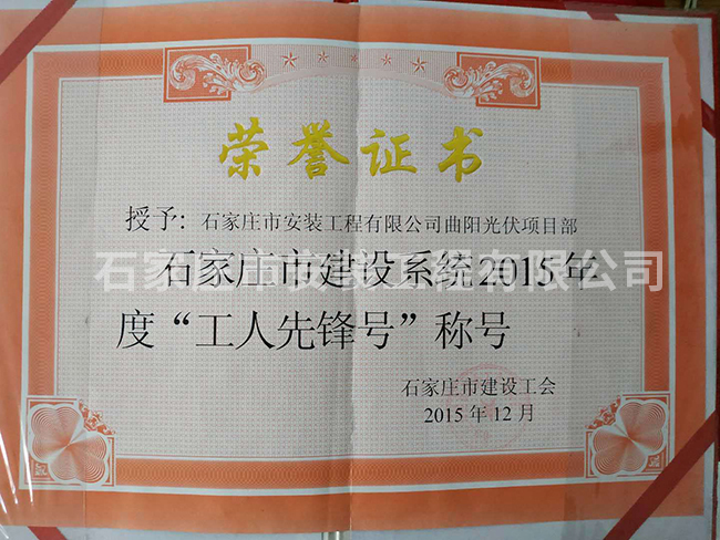 石家莊市建設系統2015年度“工人先鋒號”稱號